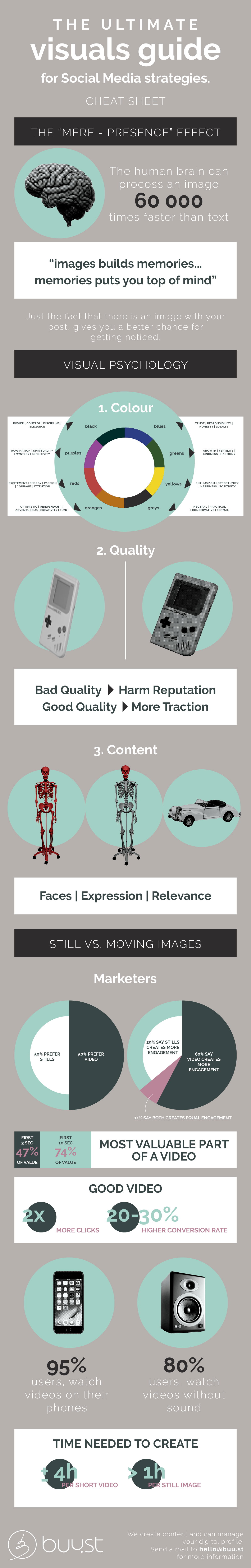 It's been proven that there are three factors to consider when creating visuals for social media and enhanced engagement.